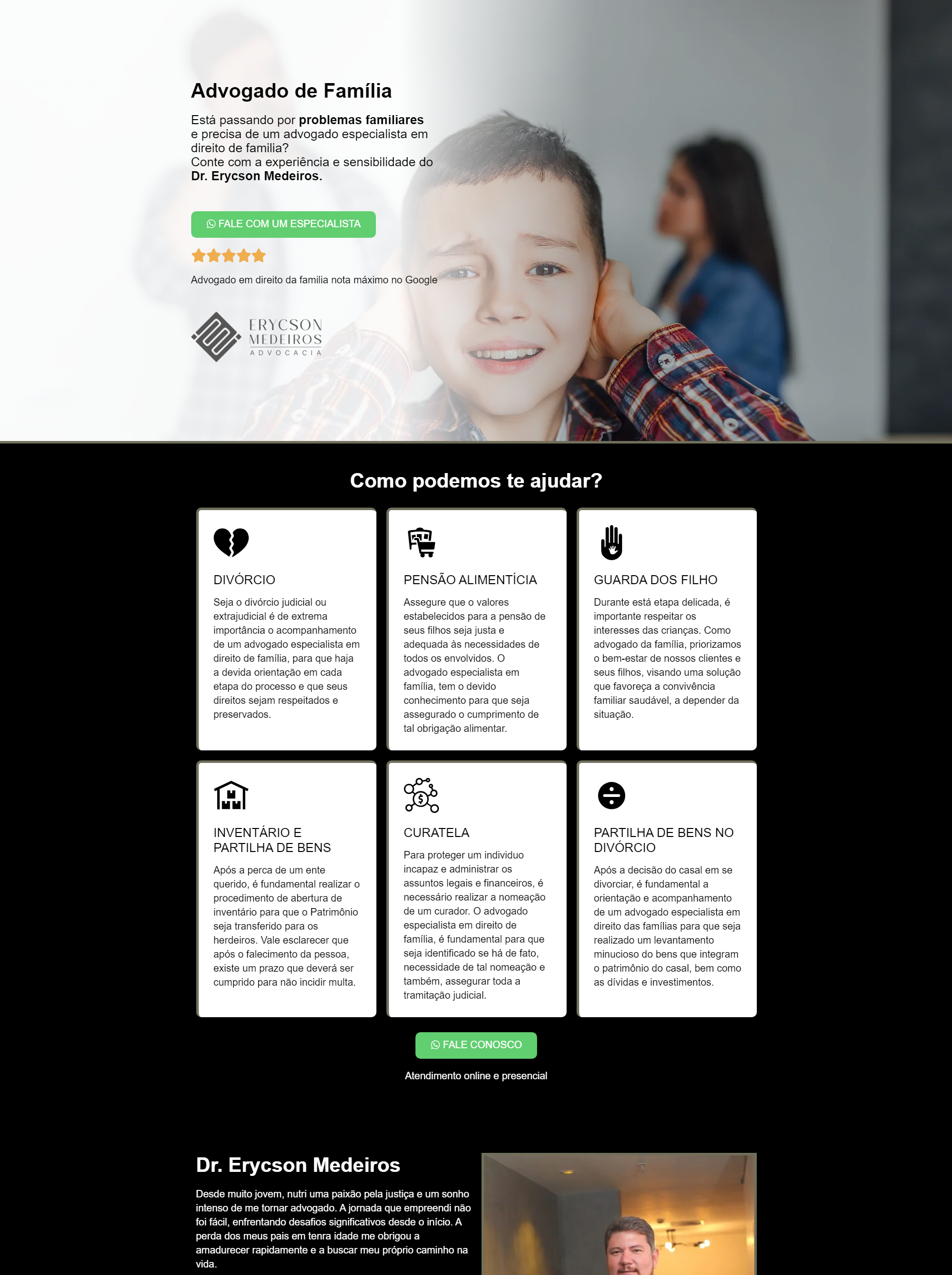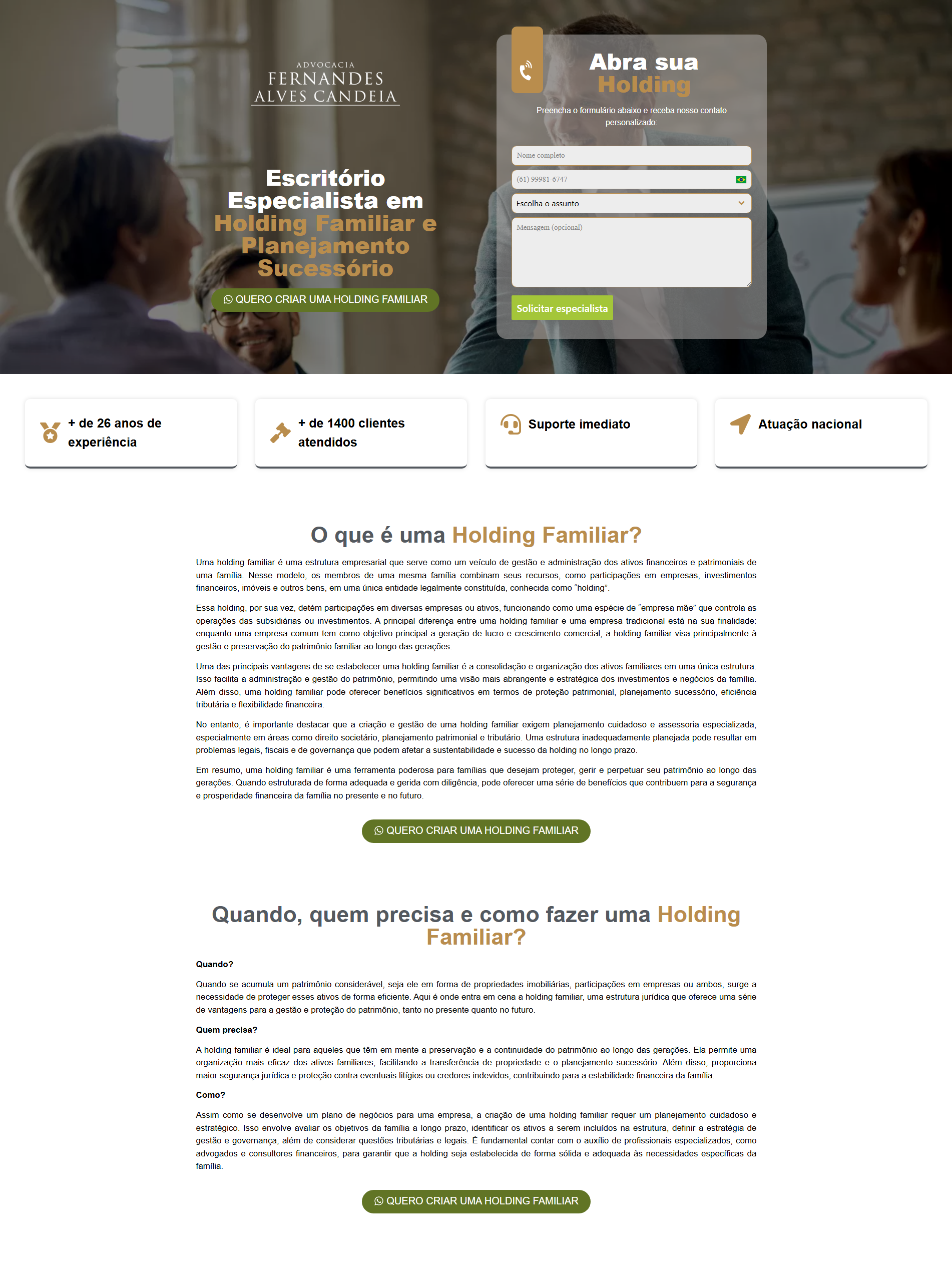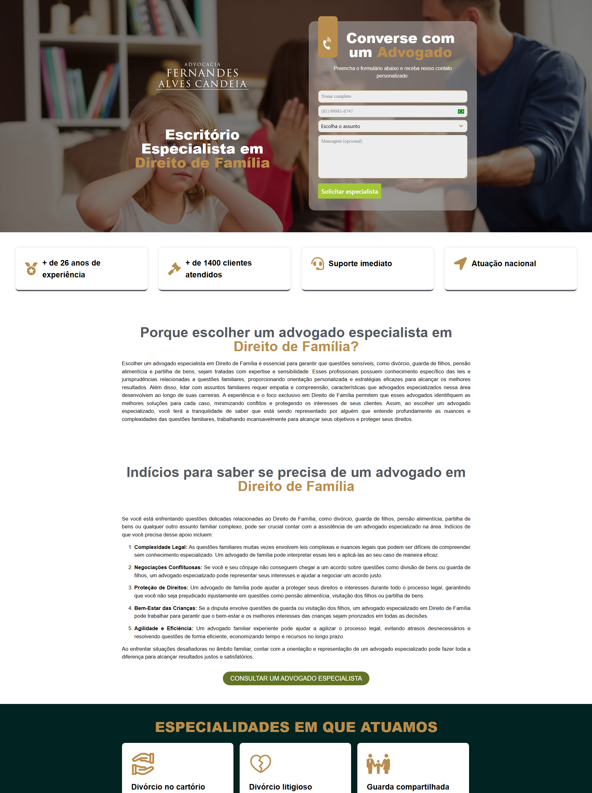 Páginas otimizadas para campanhas, focadas em conversões e geração de leads.